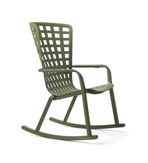 Folio Rocking è la rilassante e stilosa poltrona a dondolo per l’outdoor realizzata in resina fiberglass traforata con motivo a quadri e finitura mat.