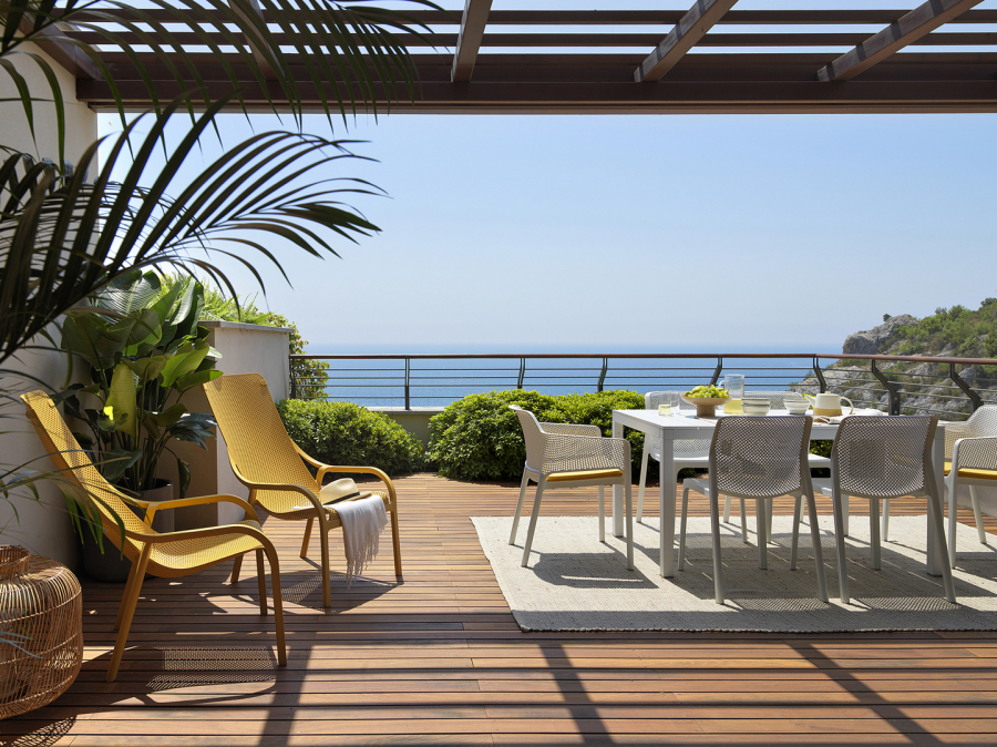 Trasmette la sensazione di benessere al solo guardarla. Poltrona outdoor in polipropilene fiberglass riciclabile, generosa e profonda nella seduta, avvolgente nella forma e con un sinuoso profilo che evoca un’onda.