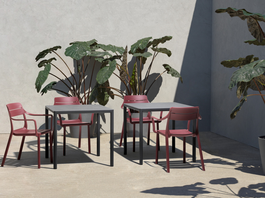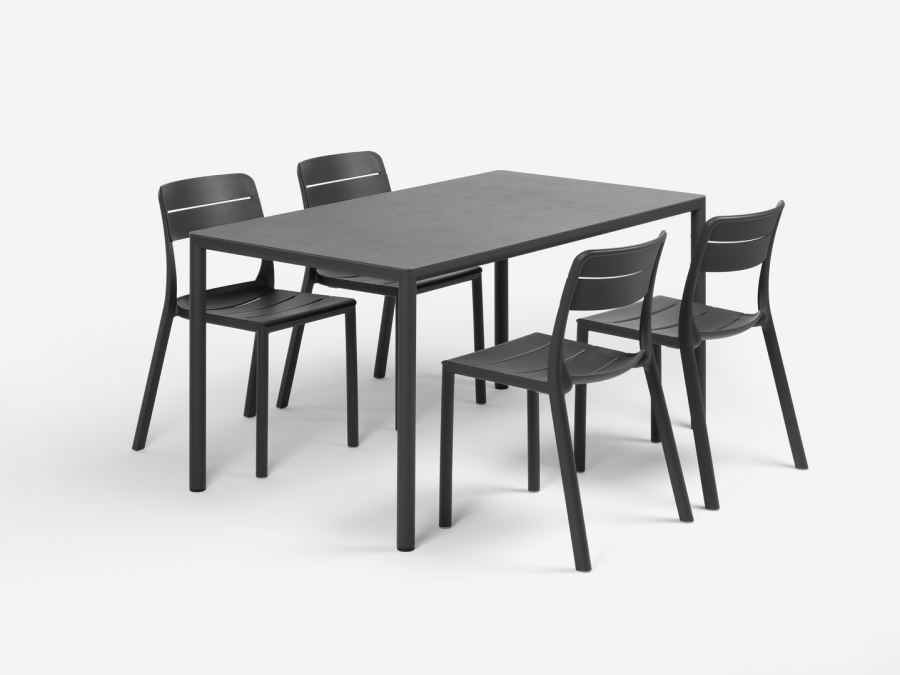 Piave è un sistema di tavoli che unisce leggerezza visiva, equilibrio formale e funzionalità: piano in laminato materico ultra sottile, angoli arrotondati e solida struttura in alluminio a sezione tonda.