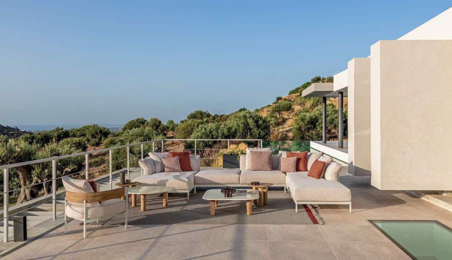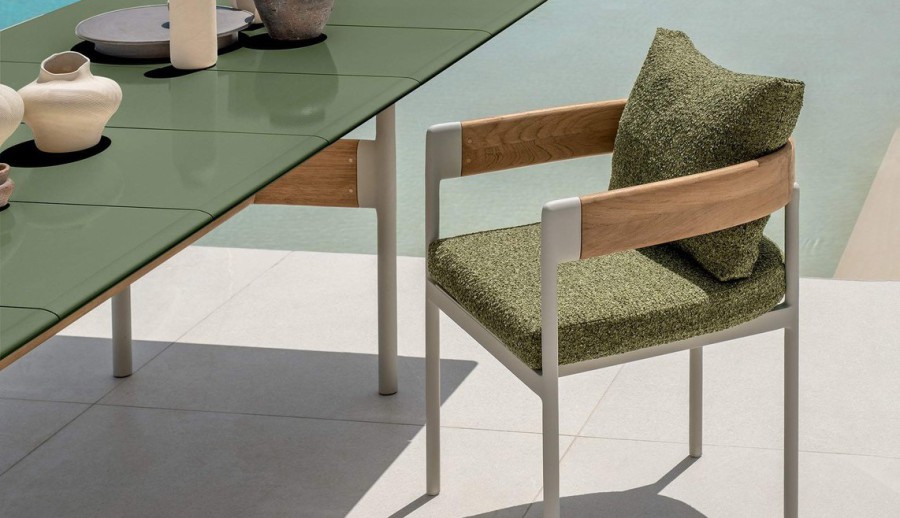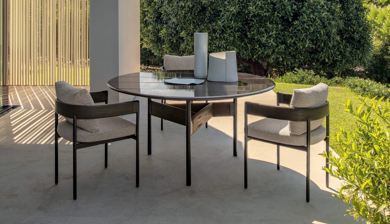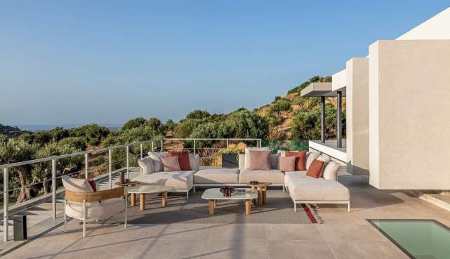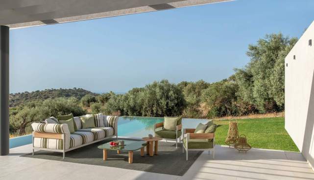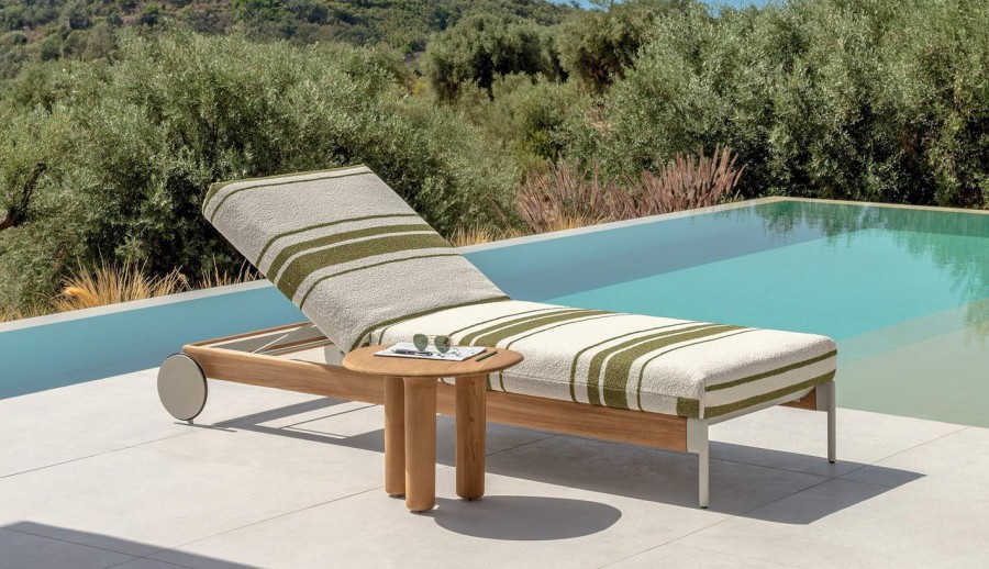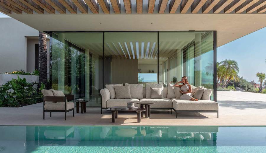 Comfort e multi-materialità sono gli elementi chiave di questa collezione che, come rievoca il nome, vuole trasmettere una sensazione di fluidità, di benessere vissuto lasciando che il tempo per il relax scorra liberamente. Una raccolta di elementi dove i cuscini avvolgenti, abbinati a materiali ricercati e a tessuti a righe dal forte valore decorativo, contribuiscono a portare l’atmosfera dell’indoor negli spazi esterni. La struttura in alluminio, in elegante bianco caldo o il più deciso mokka, si integrano armoniosamente con le sinuose lavorazioni di legno, esaltando il know di Talenti nella realizzazione di arredi che fondono materiali apparentemente lontani. Il risultato è un mix raffinato e naturale tra il calore tradizionale del teak e la forza estetica degli elementi laccati, in grado di formare una famiglia di prodotti completa e versatile che include divani componibili, poltrone lounge, tavoli e sedute dining e soluzioni relax.