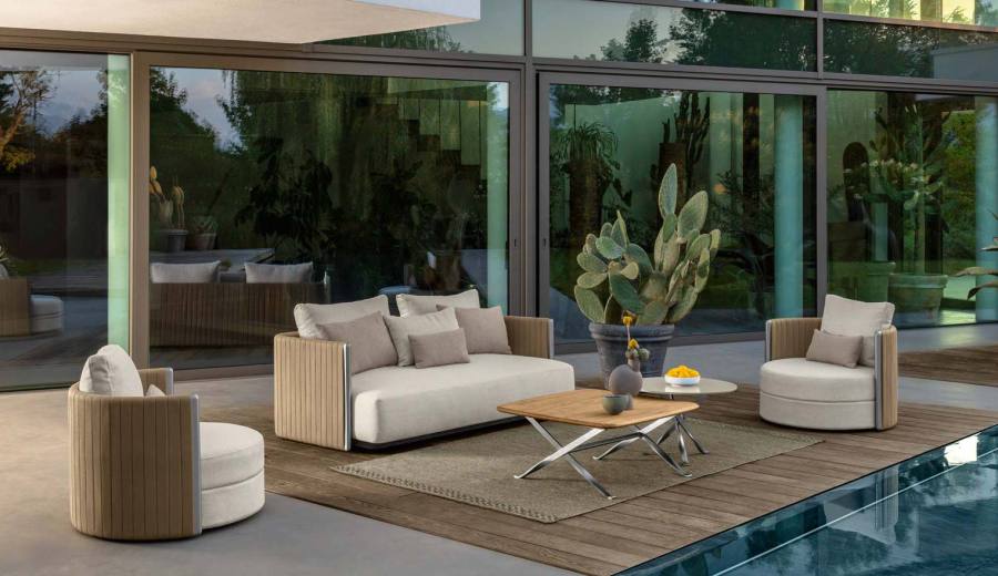 Un progetto che nasce dallo scopo di unire leggerezza e comodità nella vita en plain air, andando a ridisegnare situazioni che trasmettano sensazioni di intimità e relax, sempre nel massimo rispetto dell’equilibrio ma soprattutto della proporzione.