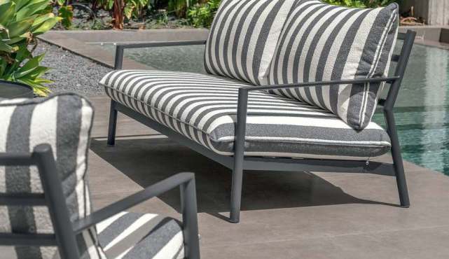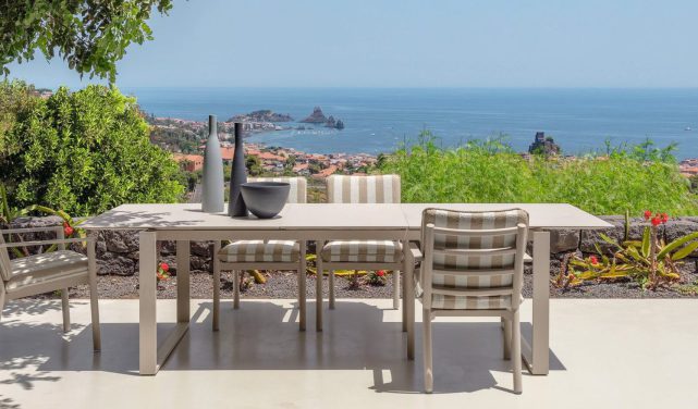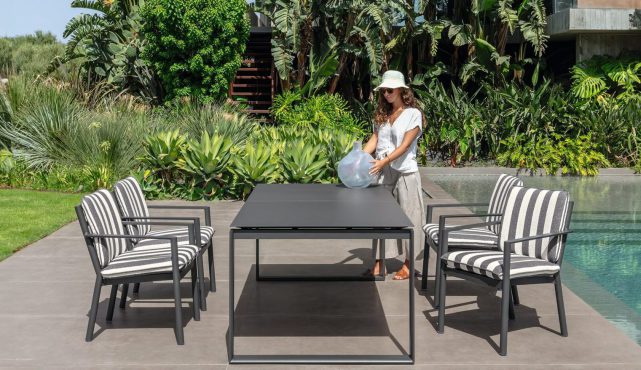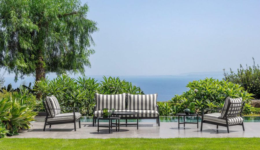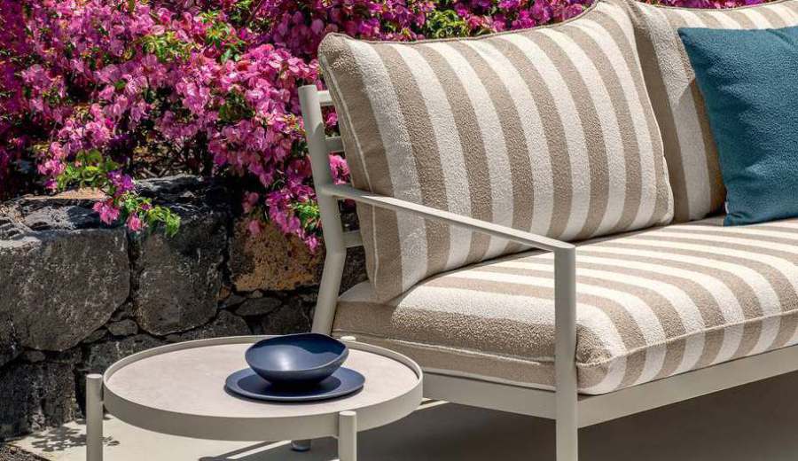 Linee nette, volumi asciutti e un tessuto rigato disegnano un profilo elegante ma discreto. Finn non cerca di stupire, ma di integrarsi con naturalezza nel paesaggio, trasformando terrazze, giardini e rooftop in luoghi di calma funzionale.